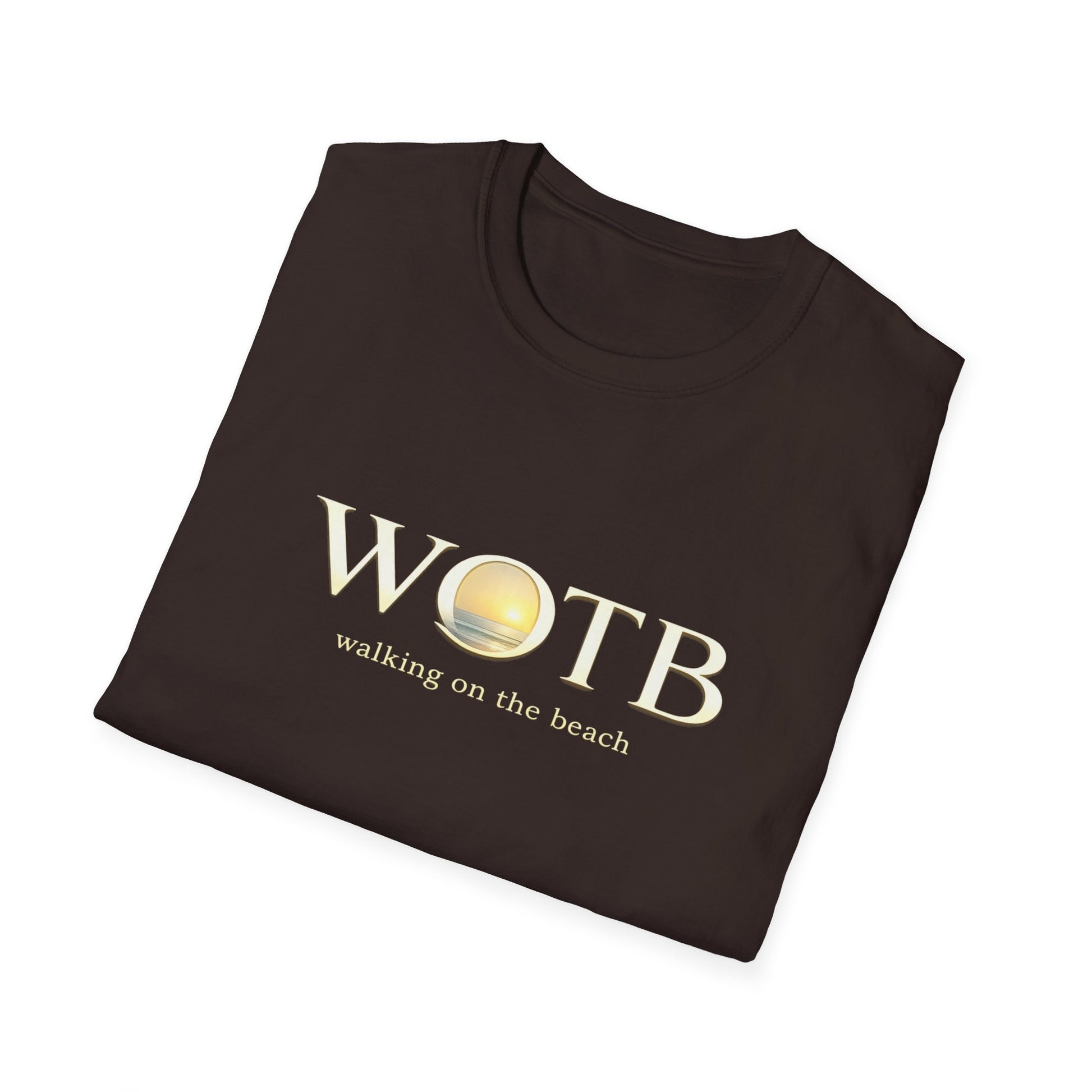 Soft, lived-in tee made to carry the calm and warmth of a shoreline stroll into everyday life. The front shows a simple WOTB logo with a sunlike circle, subtle and warm against a deep background. It drapes lightly, moves with you, and feels smooth against skin — the kind of shirt you reach for when you want quiet confidence and a relaxed, seaside mood. Wear it on slow weekend mornings, on casual evening walks, or layered under a jacket when the air turns cool. The tones and minimalist layout speak to people who favor understated graphics and meaningful details rather than loud branding.